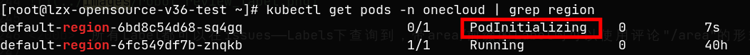 - 使用 kubectl 删除 onecloud namespace 下除 default-region-dns-xxxxx 外,所有以 default-region 开头的Pod;