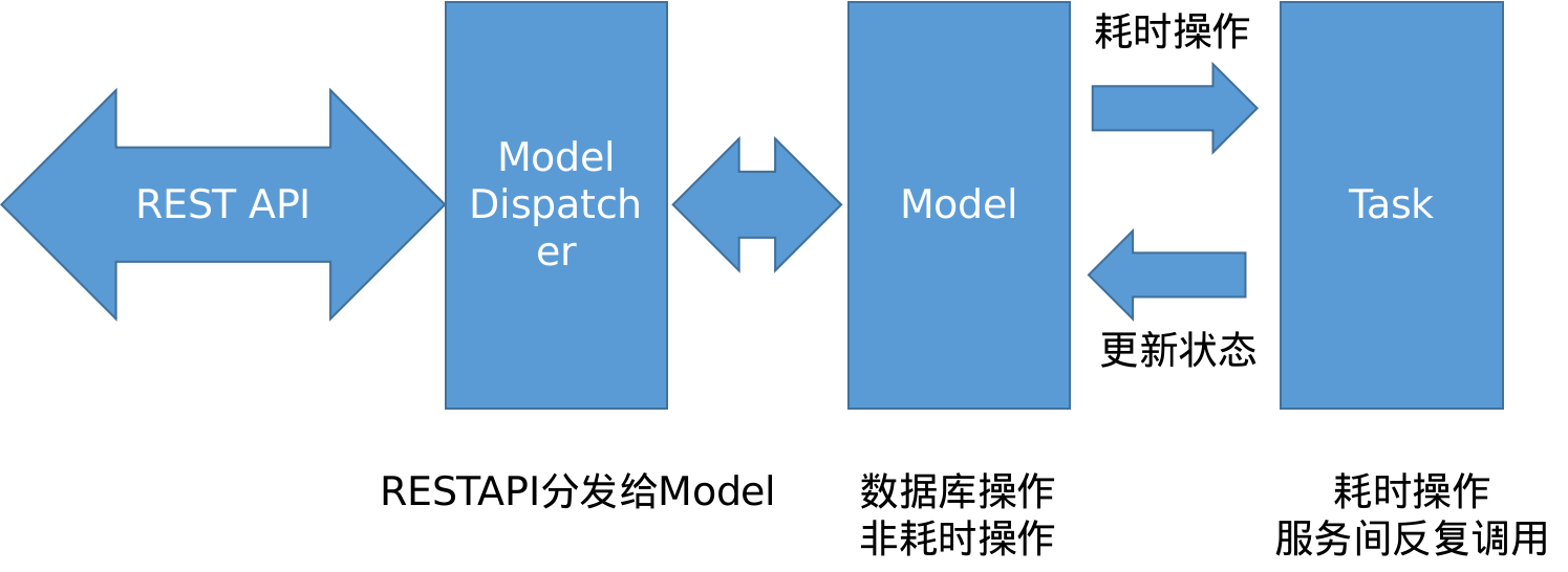 Model: 定义云平台各种资源,会进行数据库读写相关操作,如果具体业务需要进行耗时操作,会通过 Task 机制来执行耗时任务。