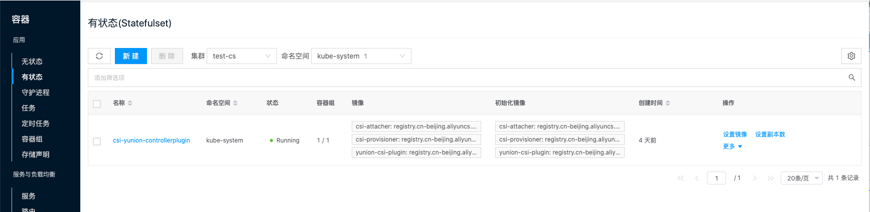 入口:在云管平台单击左上角导航菜单,在弹出的左侧菜单栏中单击 “容器/应用/有状态” 菜单项,进入有状态页面。