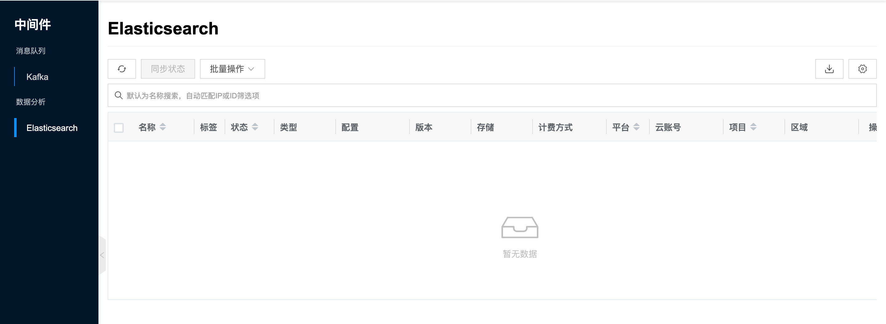 - 在Elasticsearch页面,单击列表右侧操作列 “同步状态” 按钮,同步Elasticsearch状态。
