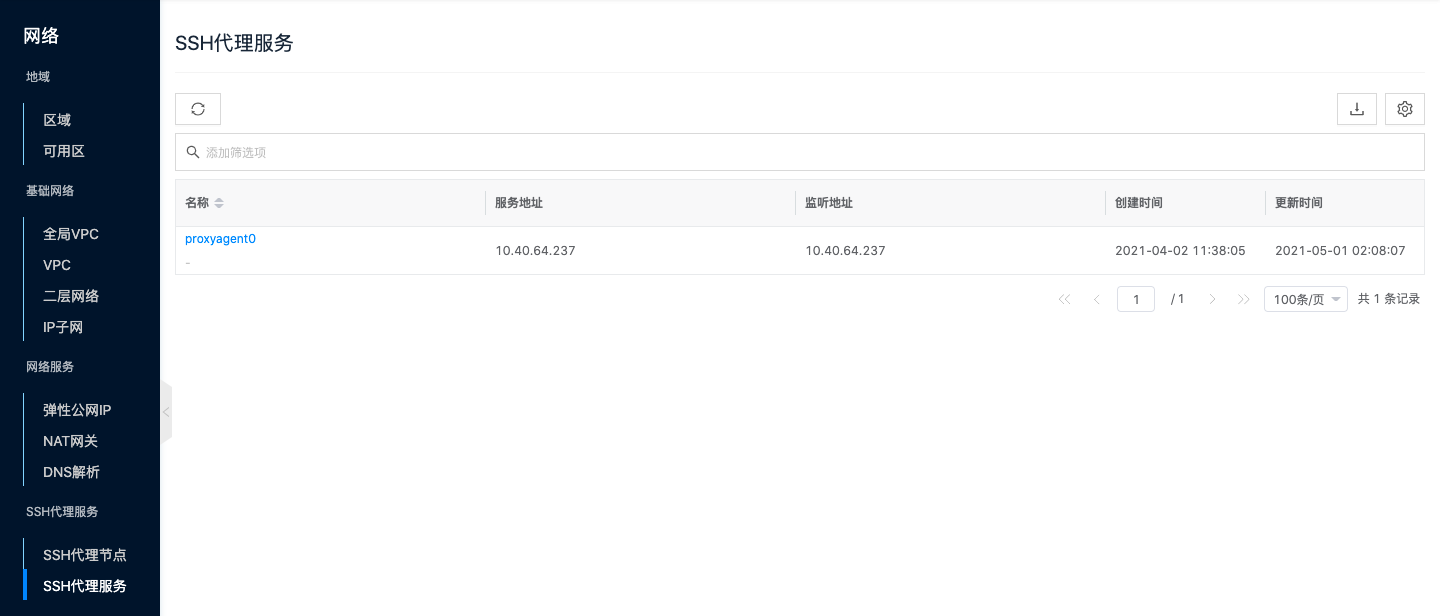 SSH代理服务即平台上的SSH服务,用于与SSH代理节点管理的虚拟机建立转发规则。